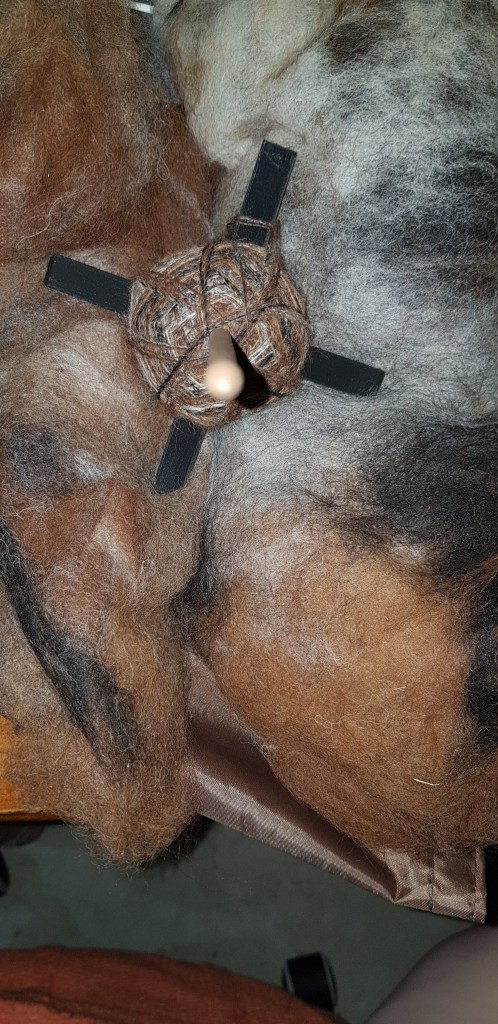 I am thinking of using all the alpaca – grey, brown, and this one, and make a couple of shawls for me and mum out of them – they all see to want to spin to a similar sort of thickness, so…………