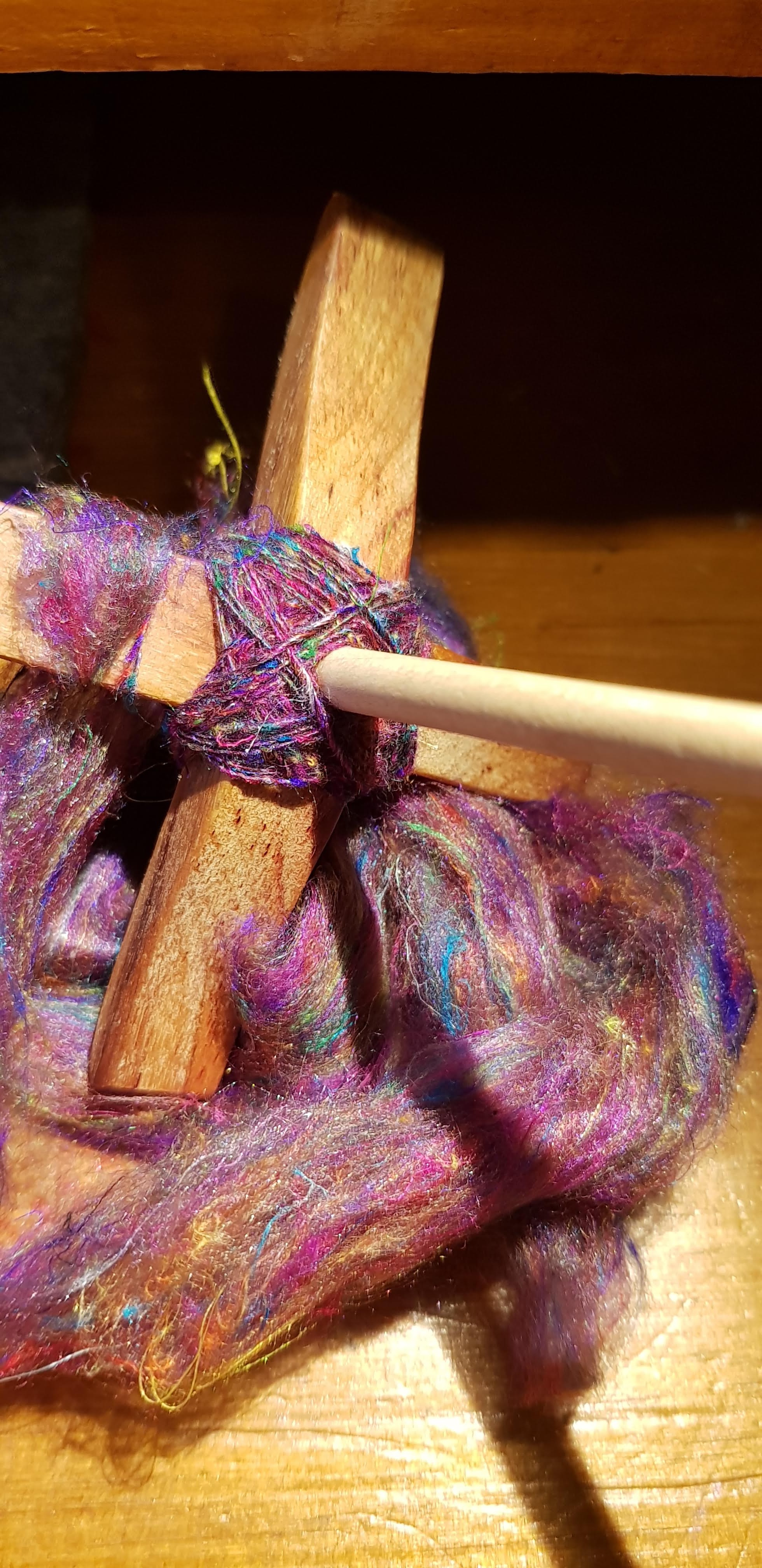 18 Holi 8/4/2019 Lovely multi-colour sari silk roving, with an overall ‘pink’ colour. Very interesting to draft, but sooo soft. Using my spindle. Started doing ply on the fly. Share this: Click to share on X (Opens in new window) X Click to share on Facebook (Opens in new window) Facebook Like Loading... Related